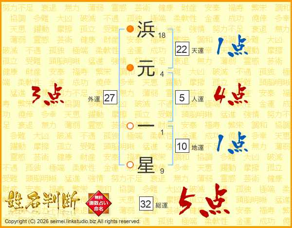 浜元一星さんの総運は32画の5点!
