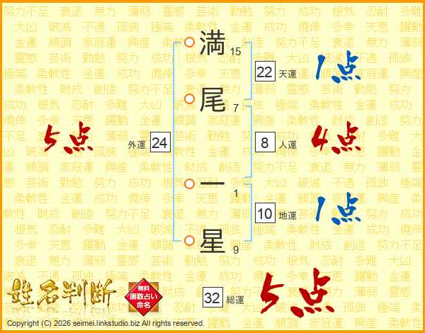 満尾一星さんの総運は32画の5点!