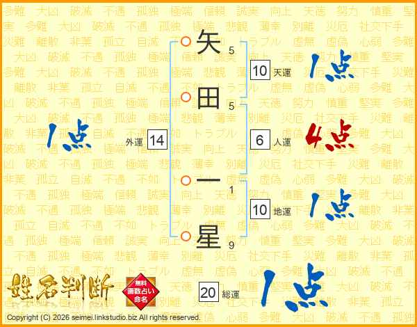矢田一星さんの総運は20画の1点!