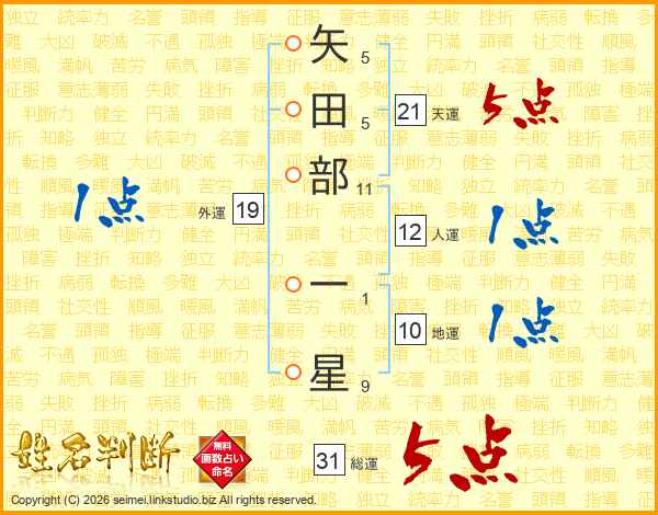 矢(5画)田(5画)部(11画) 一(1画)星(9画)