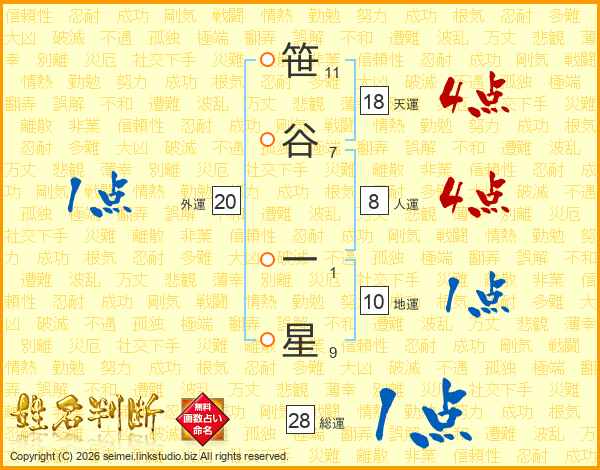 笹谷一星さんの総運は28画の1点!