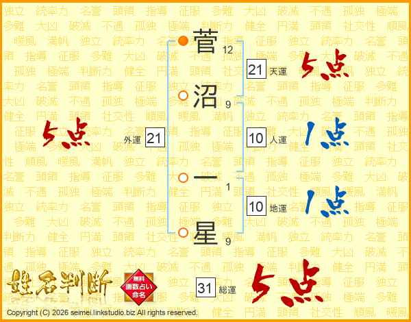 菅沼一星さんの総運は31画の5点!
