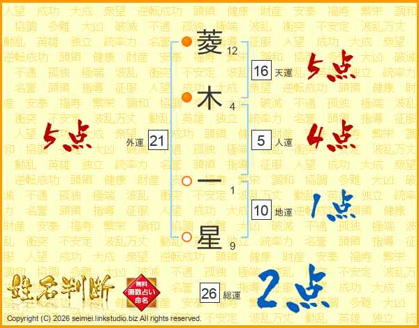 菱木一星さんの総運は26画の2点!