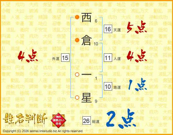 西倉一星さんの総運は26画の2点!