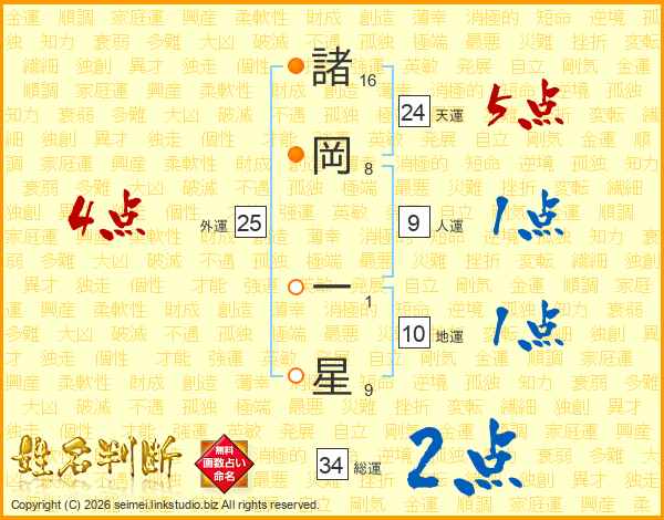諸岡一星さんの総運は34画の2点!