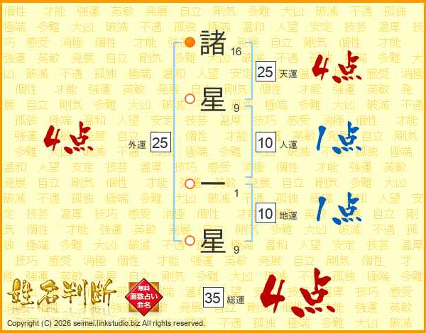 諸星一星さんの天運は25画の4点!