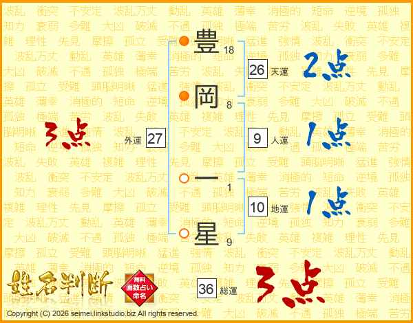 豊岡一星さんの天運は26画の2点!