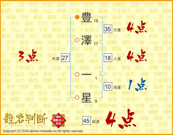 豊澤一星さんの総運は45画の4点!