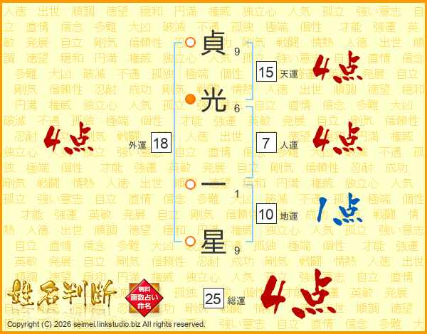 貞光一星さんの外運は18画の4点!