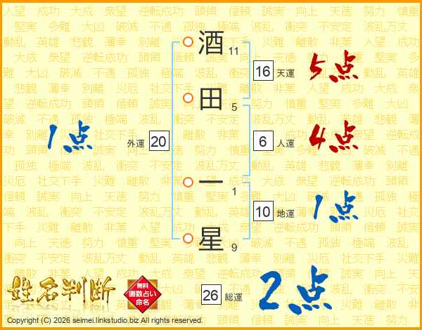 酒田一星さんの総運は26画の2点!