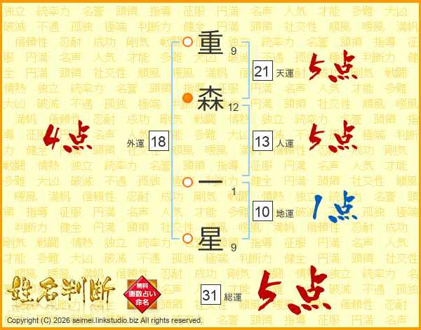重森一星さんの総運は31画の5点!