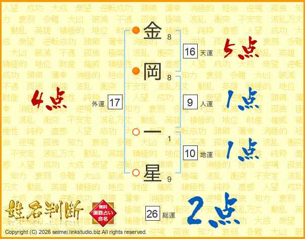 金岡一星さんの総運は26画の2点!