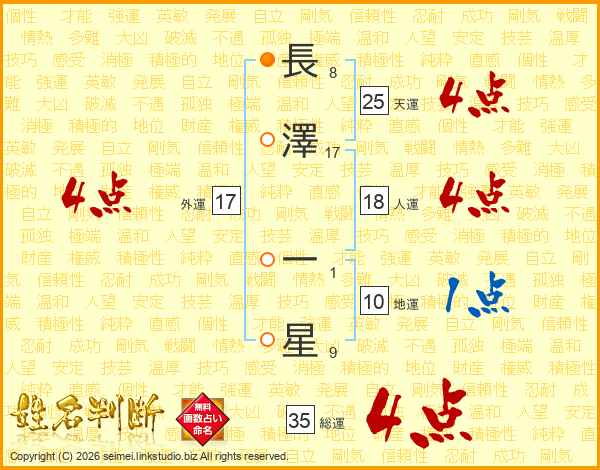 長(8画)澤(17画) 一(1画)星(9画)