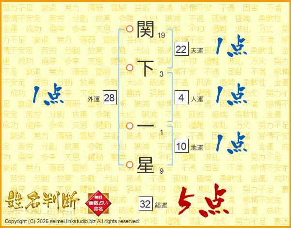 関下一星さんの総運は32画の5点!