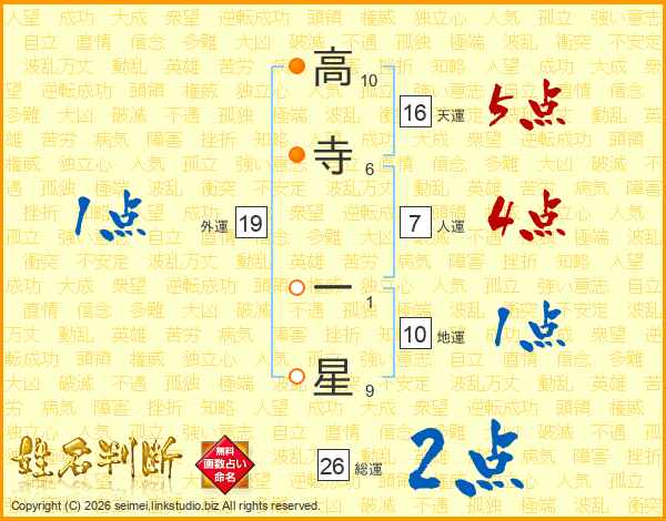 高寺一星さんの総運は26画の2点!