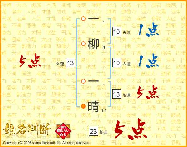 一柳一晴さんの外運は13画の5点!