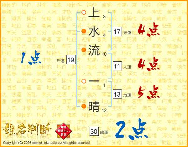 上水流一晴さんの人運は11画の4点!