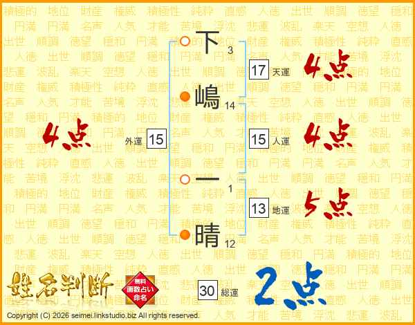 下嶋一晴さんの天運は17画の4点!