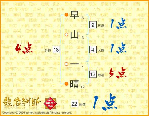 早山一晴さんの総運は22画の1点!