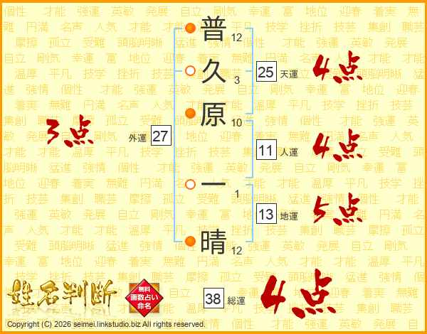 普久原一晴さんの総運は38画の4点!