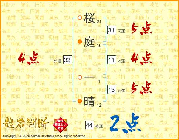 桜庭一晴さんの外運は33画の4点!