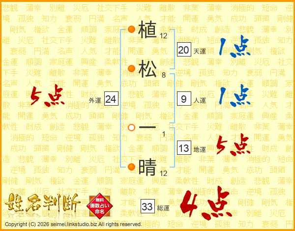 植松一晴さんの総運は33画の4点!