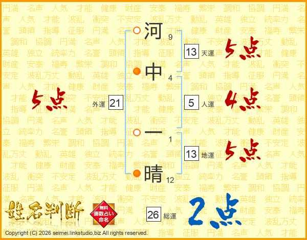 河中一晴さんの総運は26画の2点!
