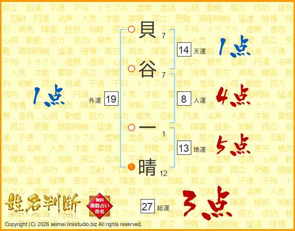 貝谷一晴さんの天運は14画の1点!
