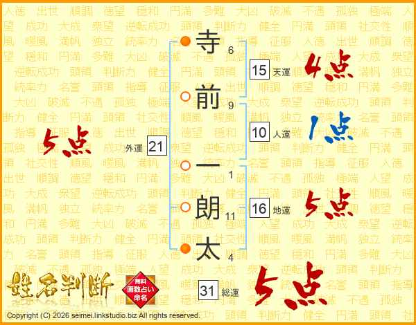 寺前一朗太さんの総運は31画の5点!