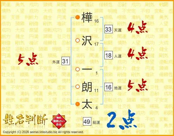 樺沢一朗太さんの天運は33画の4点!