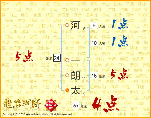 河一朗太さんの外運は24画の5点!