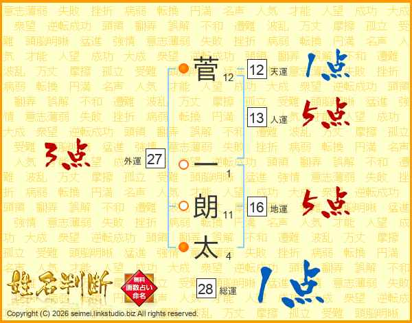 菅一朗太さんの総運は28画の1点!