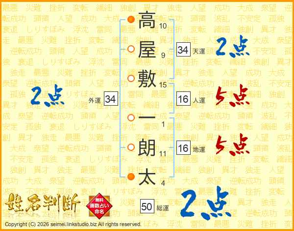 高屋敷一朗太さんの天運は34画の2点!