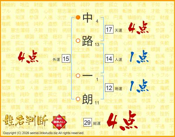 中路一朗さんの総運は29画の4点!