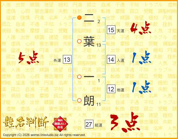 二葉一朗さんの総運は27画の3点!