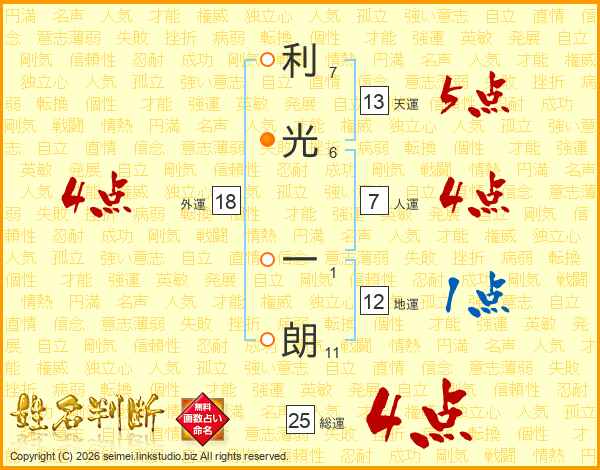 利光一朗さんの総運は25画の4点!