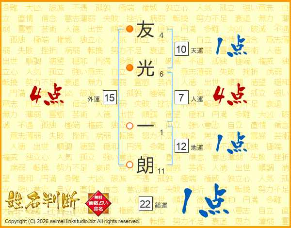 友光一朗さんの総運は22画の1点!