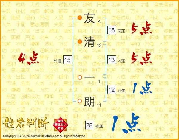 友清一朗さんの総運は28画の1点!