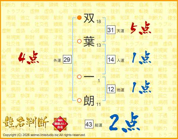 双葉一朗さんの総運は43画の2点!