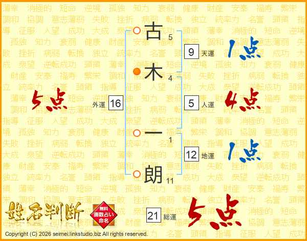 古木一朗さんの総運は21画の5点!