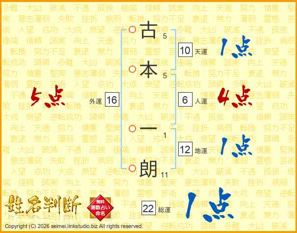 古本一朗さんの総運は22画の1点!