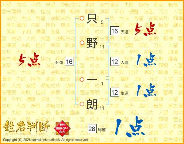 只野一朗さんの総運は28画の1点!