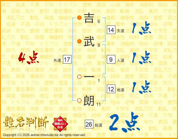 吉武一朗さんの総運は26画の2点!