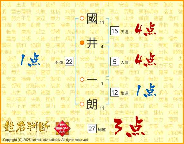 國井一朗さんの天運は15画の4点!