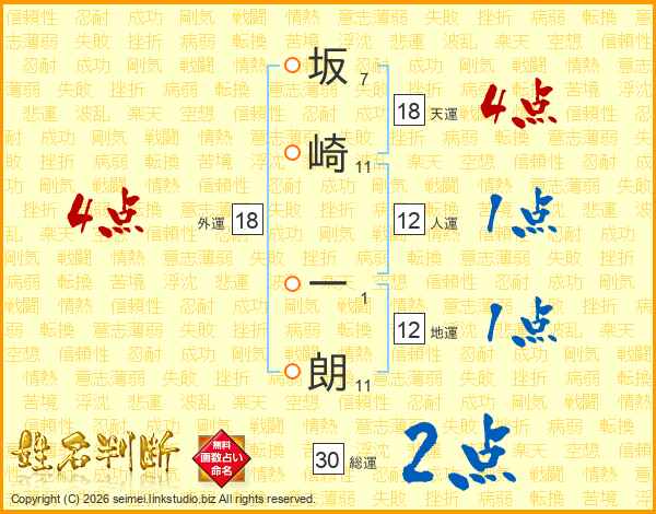 坂崎一朗さんの天運は18画の4点!