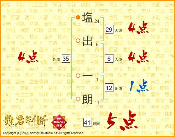 塩出一朗さんの総運は41画の5点!