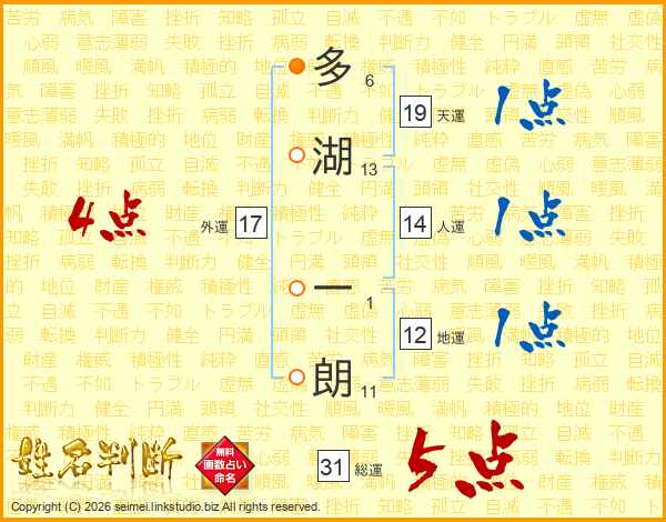 多湖一朗さんの総運は31画の5点!