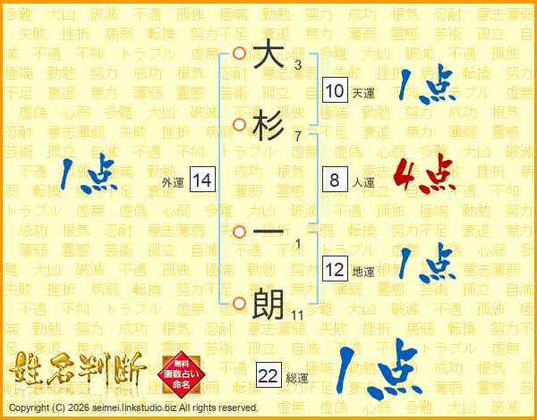 大杉一朗さんの総運は22画の1点!