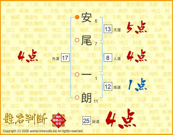 安尾一朗さんの総運は25画の4点!