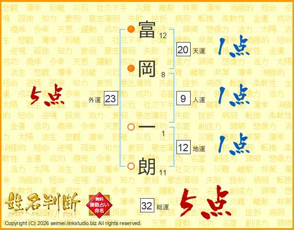 富岡一朗さんの総運は32画の5点!